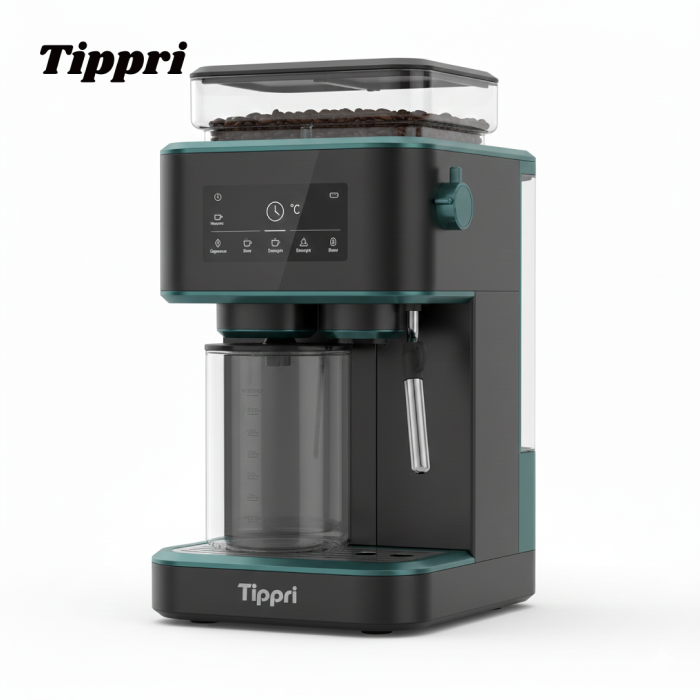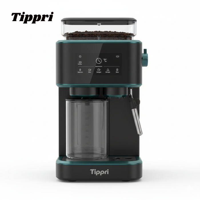 The Tippri LuxeBrew Pro is a premium, fully-automated coffee system designed to bring the full café experience into the home. It offers true bean-to-cup functionality, integrating a conical burr grinder and a high-pressure pump to deliver everything from authentic espresso shots to a full carafe of drip coffee. Its user-friendly interface allows for personalized, one-touch brewing of a wide range of hot and cold beverages.