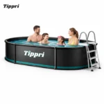 The Tippri Oval Steel-Walled Above Ground Pool Package is a durable, semi-permanent swimming solution designed for years of backyard enjoyment. Featuring a robust, corrosion-resistant galvanized steel structure and a large oval shape, it maximizes swimming area while offering a sleek, contemporary aesthetic. This comprehensive kit typically includes all necessary components like a pump, filter, liner, and safety ladder for quick and complete setup.